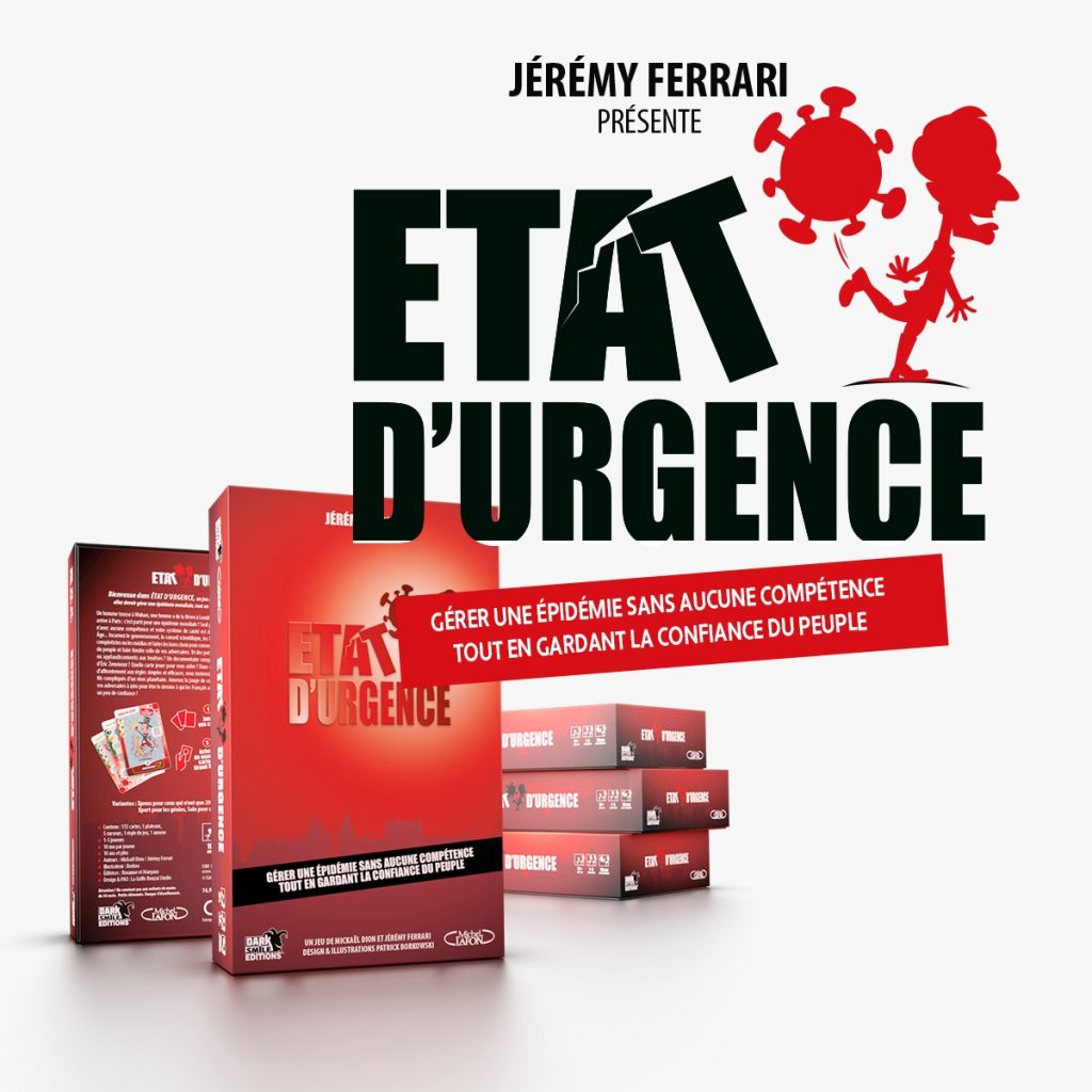 Variantes : Xpress pour ceux qui n’ont que 20 mn pour gérer la pandémie, Xpert pour les génies, Solo pour ceux qui n’ont pas d’amis. Un jeu provocateur, drôle et rapide, aux règles simples. Entièrement basé sur des faits réels ! Un jeu de cartes stratégique qui retrace un an et demi d’épidémie sous la plume de Jérémy Ferrari !En stock