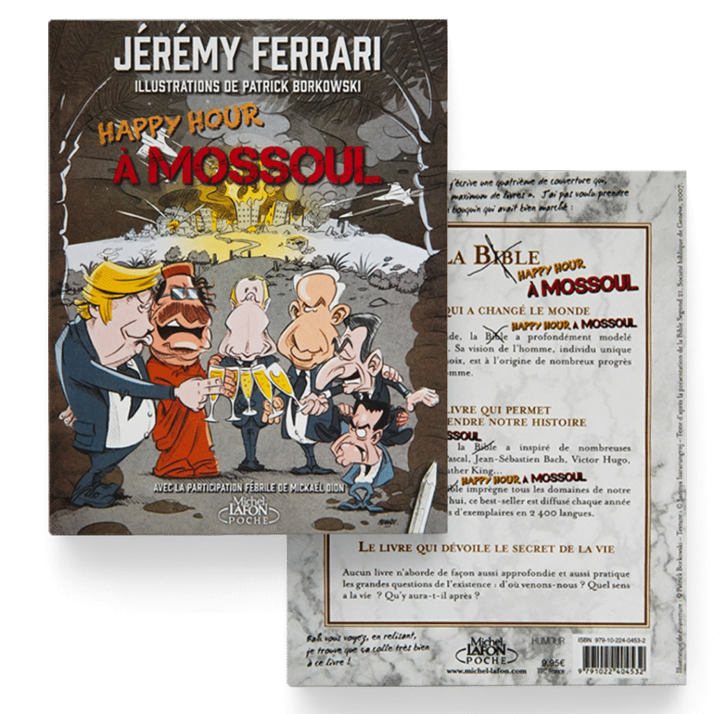 Happy Hour à Mossoul c’est 251 pages de chaos organisé au format poche : terroristes ratés qui n’ont jamais marqué l’histoire, punchlines de Churchill, sms de Daladier, soldats qui ont continué la seconde guerre tout seuls pendant 30 ans, invasion de la Pologne sur un air de Claude François et voyage en Indochine avec l’empereur jaune qui voulait devenir rouge. A Paris comme à Pyongyang, la guerre c’est chouette !Le second livre de l’humoriste le plus explosif de sa génération.